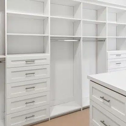 From walk-in closets to kitchen pantries, we create custom storage solutions that fit your lifestyle.